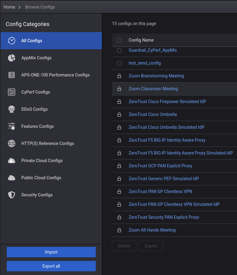 In CyPerf, open the Browse Configs